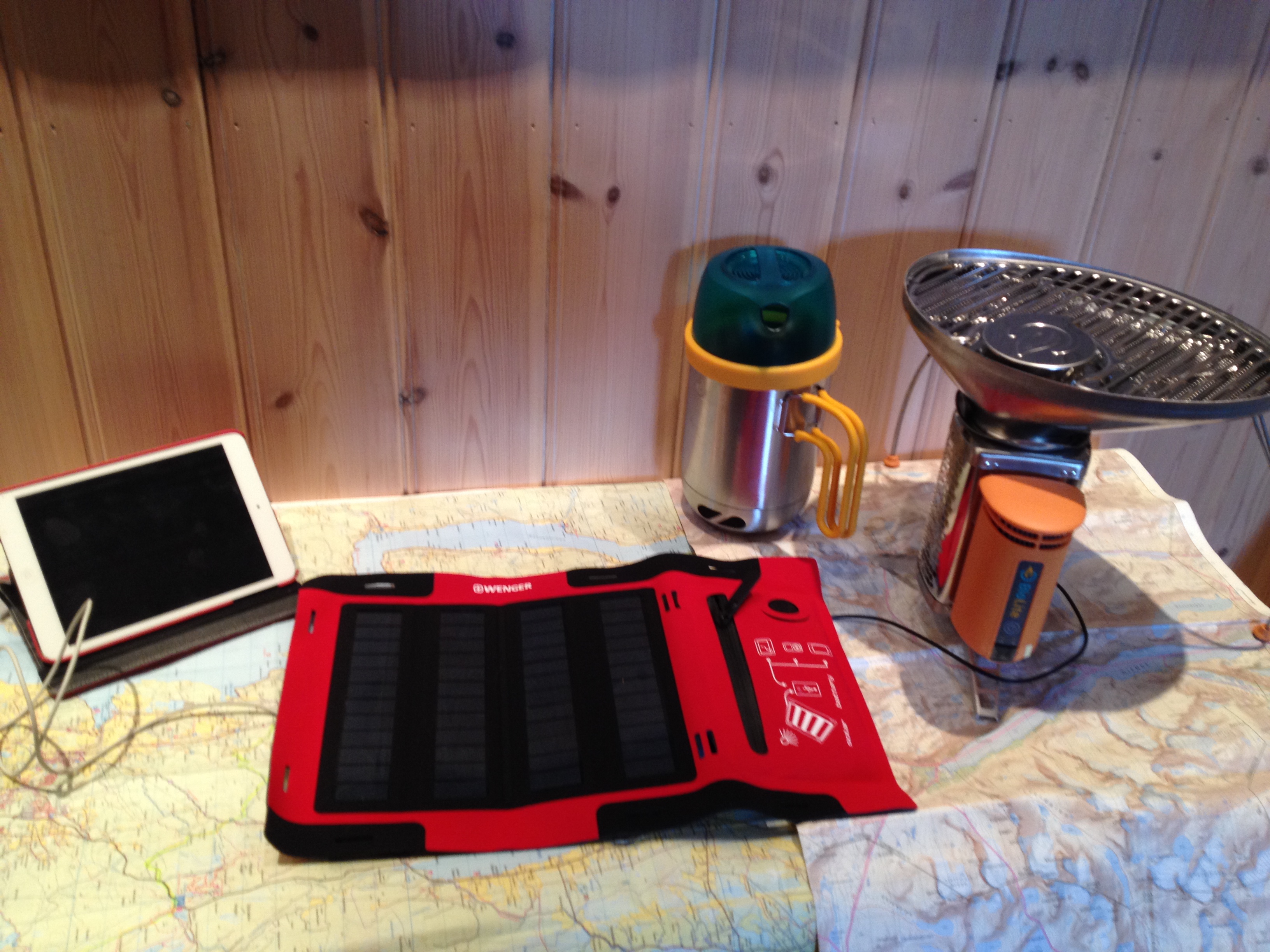 Energi/teknologi: Wennger solcellelader, Biolite – Geotermisk lader, Iphone, Ipad, Batteripakke og  Ladepakke.