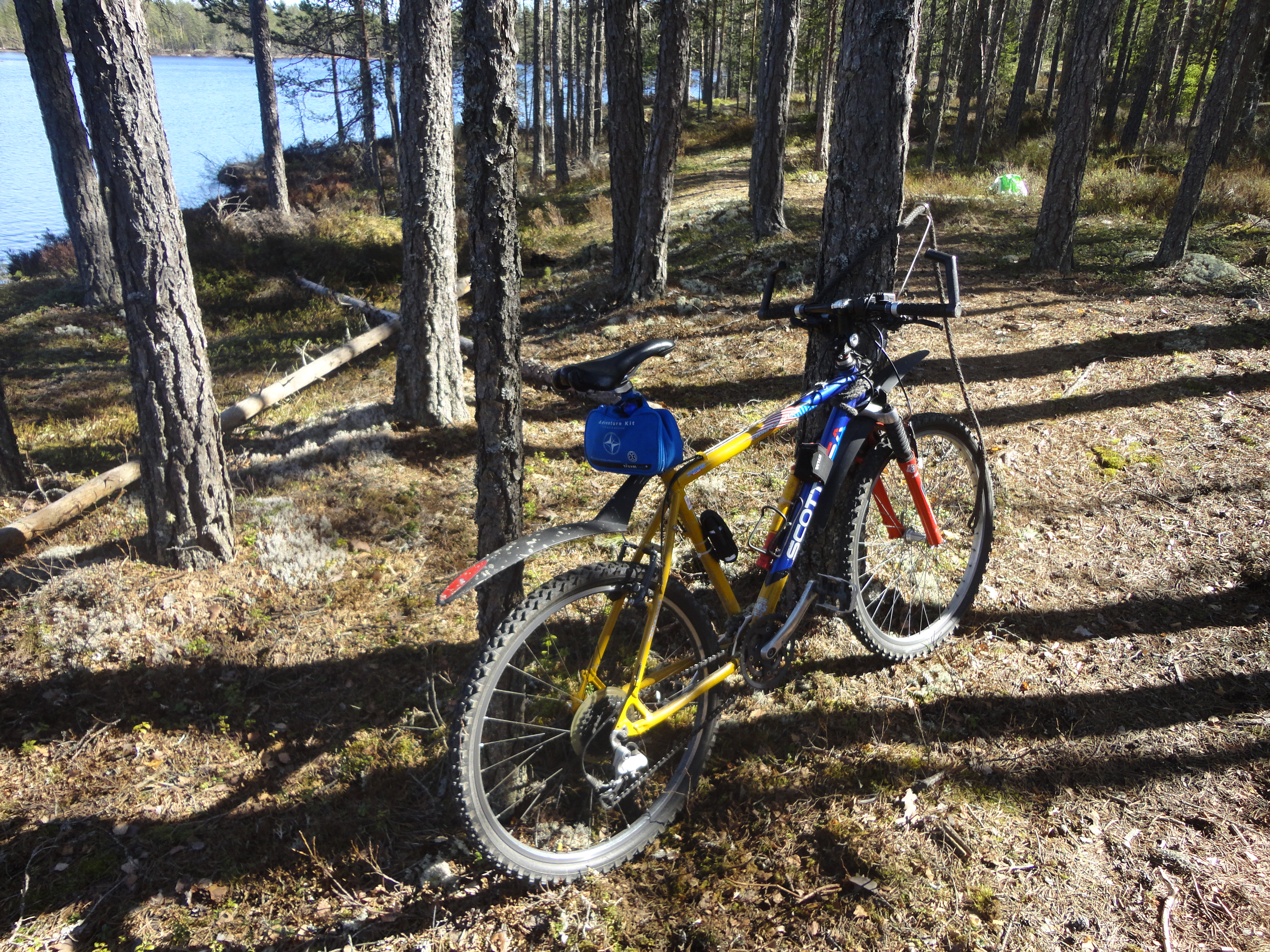 Etter frokost i dag gikk jeg å la meg noen timer i teltet. det er en meget behagelig plass og når vnden blåser i trærne, blir det som en «gyngeseng» , frem og tilbake, til olelukkøye kommer, noe han gjør innen 5 minutter. Der ble jeg liggende til lunsj, litt for lenge men sånn er det. Jeg droppet lunsjen og spente for hundene. Dagens treningsrundt var på litt under 20 km, dette er ikke helt nøyaktig da jeg gikk tom for strøm på telefonen. Hundene jobber utrolig godt. Jeg føler det gir bedre utbytte av treningen på sykkel, en på kickbike. Noe jeg på forhånd ikke trodde. Det blir jevnere fart og ikke så mye rykk og napp i lina. Men jeg ser fallgruvene .