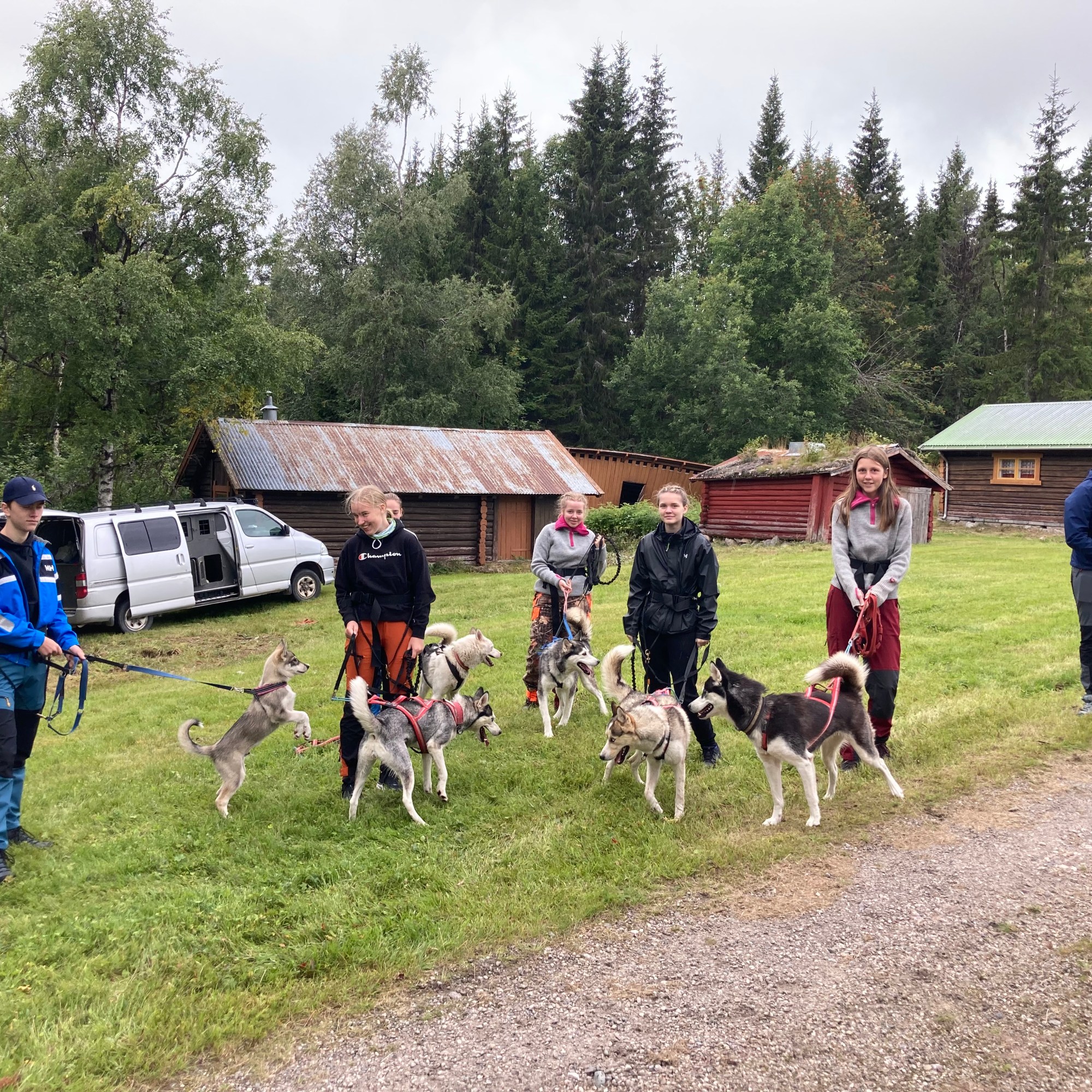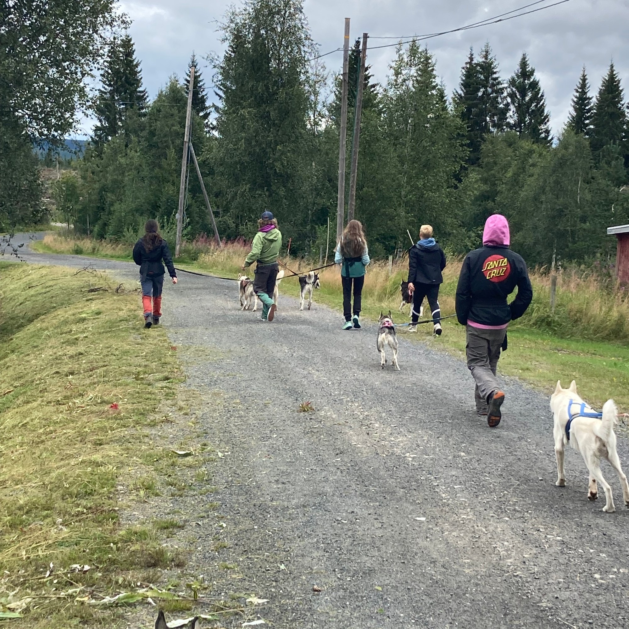 Da var det skolestart og hundene skulle være med VG1 til Grøtbekklia for myk skolestart. Tema for dagen var brukshund og elevene skulle føle på det å snøregå med trekkhunder. De skulle også bli litt kjent med de hundene som skal følge de i de neste to årene. Elevene var veldig flinke og hundene gjorde jobben, men Frekke og Aris synes det er tull å gjøre ting mer enn tre ganger, sånn er det når man jobber som guder og gudinner 🙂