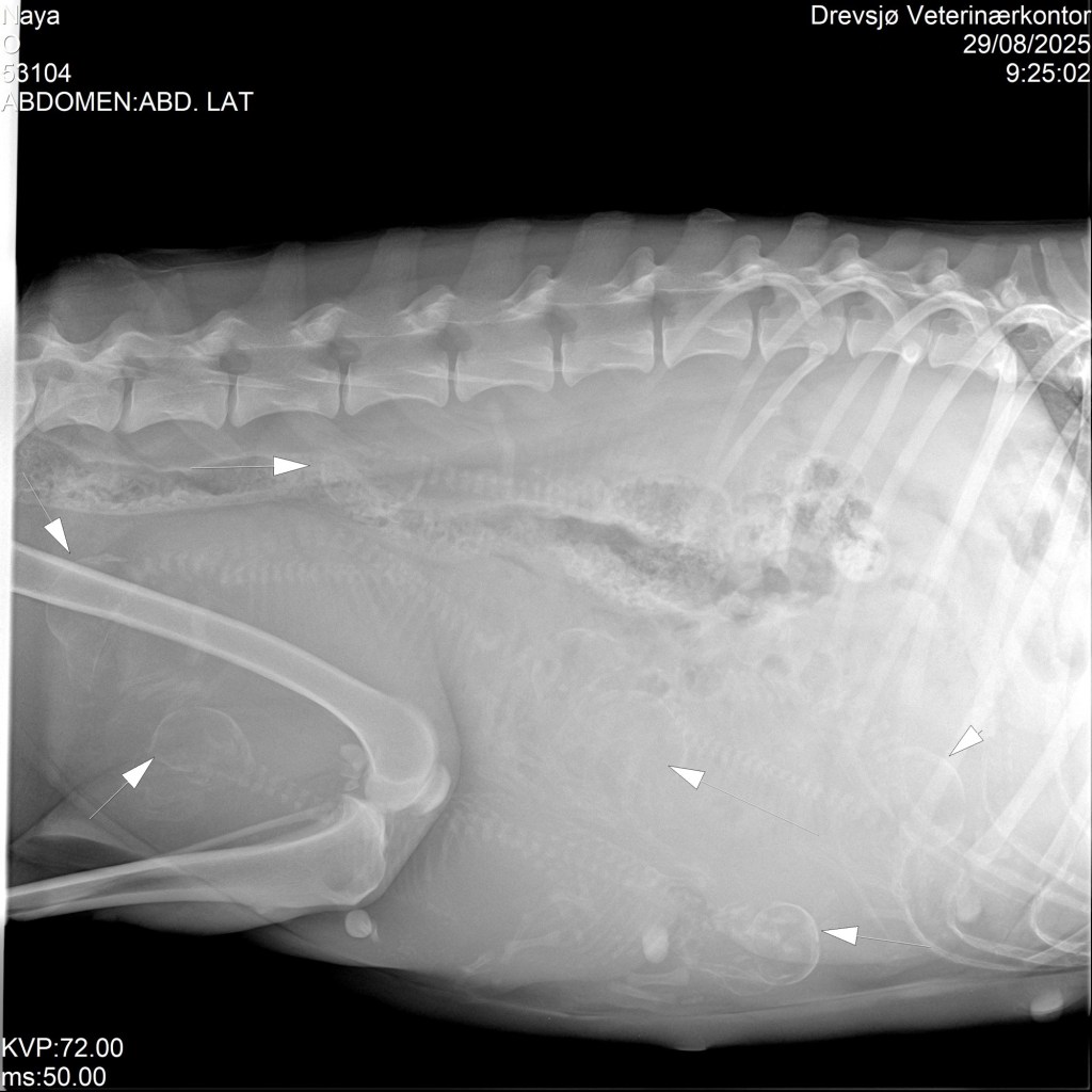 Nå nærmer det seg termin for begge tispene og jeg må si jeg har vært en smule bekymret etter ultralyd og beskjed om et veldig stort kull på Naya. På røntgen er det funnet seks små astronauter hos Naya og en ensom astronaut hos Oliane. Jeg er letter over at Naya får et normalt kull som er akkurat passe stort og litt bekymret for den ene til Oliane. Men vi skal følge henne tett og har kort vei til dyktige fagfolk. Begge har sjekket inn i valpekassene sine og har funnet seg til rette. Naya er tatt ut av trening, mens Oliane har hatt sin siste trening i kveld på en stund ❤️
