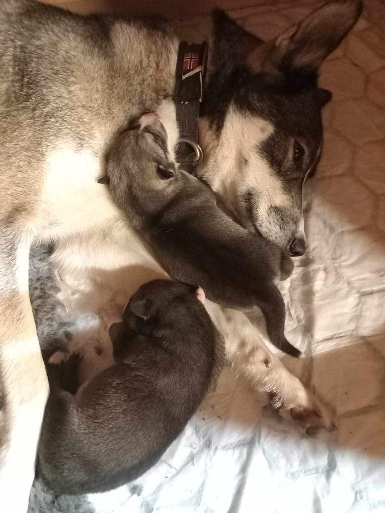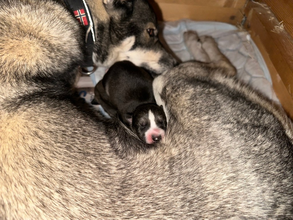 I dag fyller Munin (Dole) og Doffen et år. Kanskje blir også E-kullet født i dag. begge to har blitt to fine gutter og er høyt elsket. Doffen har begynt trening og viser svært gode tendenser og et utrolig fint løpesett 😁 Mor NTCH Artic Song SG Arora og NTCH Vesterelvas Donald er stolte foreldre og vi alle ønsker begge to masse til lykke med dagen🥳