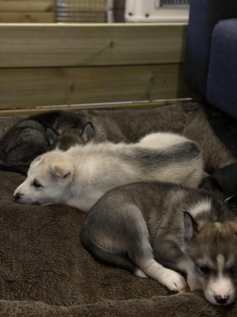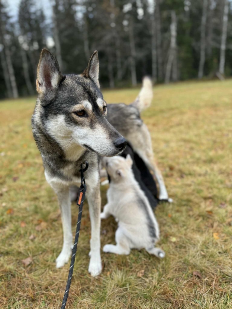I dag har vi hatt et hyggelig besøk av Emma og Lina, vi har også hatt besøk av barnevernet som har hilst på de små. Det er spesielt hyggelig å få besøk av tidligere Jønsbergelever 😍 Valpene er nå mye ute av valperommet og utforsker området rundt Grøtbekklia ❤️